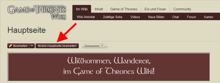 Die Hauptseite deines Wikis ist wahrscheinlich die Seite, welche am meisten besucht wird und ist außerdem der Ort, von dem aus der Leser die interessantesten Inhalte und wichtigsten Seiten deiner Community entdeckt. Es lohnt sich also, etwas mehr Zeit mit der Gestaltung deines „Empfangs” zu verbringen und sicherzustellen, dass jeder Besucher alle interessanten Inhalte leicht lesen und schnell finden kann.
